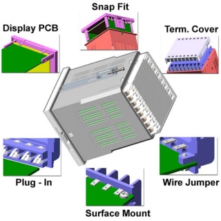 Main Features: * Snap-together design * Accommodate 4 PCBs * Snap-On latches for display PCB * 16 Terminals * Three Terminal-To-board Connection Options * Plug-In Version-leaf spring contact offers quick connection, fast replacement reduces down time * Surface Mount Version-eliminates wiring, cost effective for higher volume * Wire Jumper Version-can be custom loaded for application configuration & to reduce cost * IP-20 Protection (finger protected) snap fit Terminal Cover * Easy assembly and disassembly for servicing * Ventilation slots for effective heat dissipation * Attractive structured surface * Customized cutouts and holes possible * Panel Mounting with attractive clamps * Choice of material (plastic) & Color ABS - White, Black & Dark Gray, Polycarbonate - Fire Retardant UL 94V-0 at 1mm (Lexan-943) - White