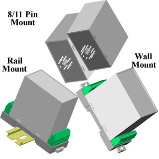 Tri-Mount plastic modular case offers packaging to wide range of applications from automotive industry to home/building automation because of its unique three mounting feature of 8 pin / 11 pin, DIN Rail and Wall mounting. Typical applications are Relays, Timers, Transducers, Transmitters, Thermostat, Sensing and Monitoring Devices.